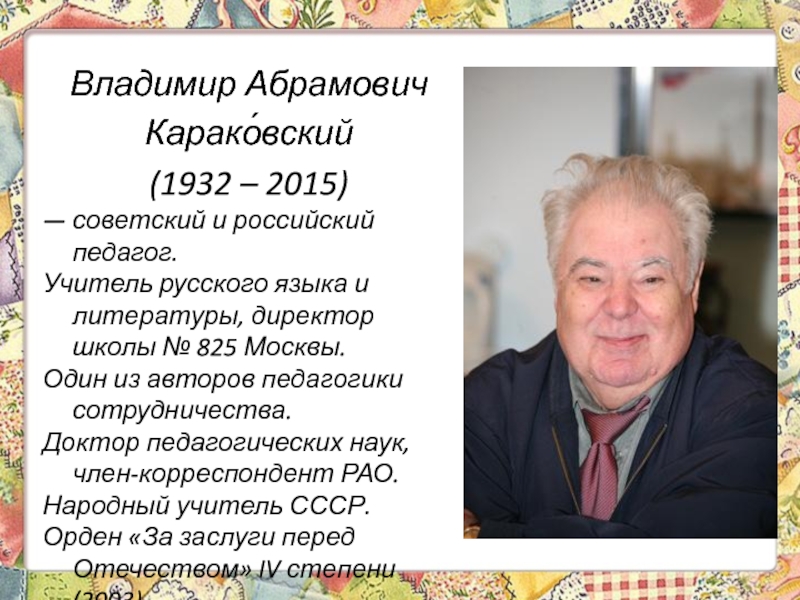 Караковский В. А. Общечеловеческие ценности — основа целостного учебно-воспитательного процесса // Воспитание школьников. — 1993. — № 3. — С. 2.