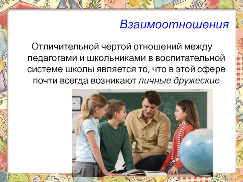Постоянная интеграция педагогических воздействий, высокий уровень неформальных межличностных отношений,