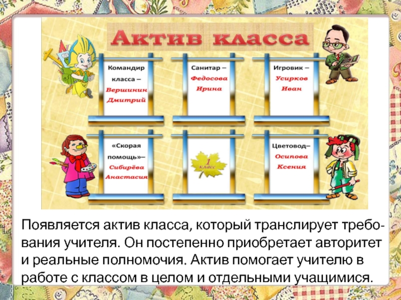 авторитет и реальные полномочия. Актив помогает учителю в работе с
