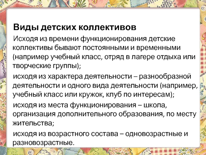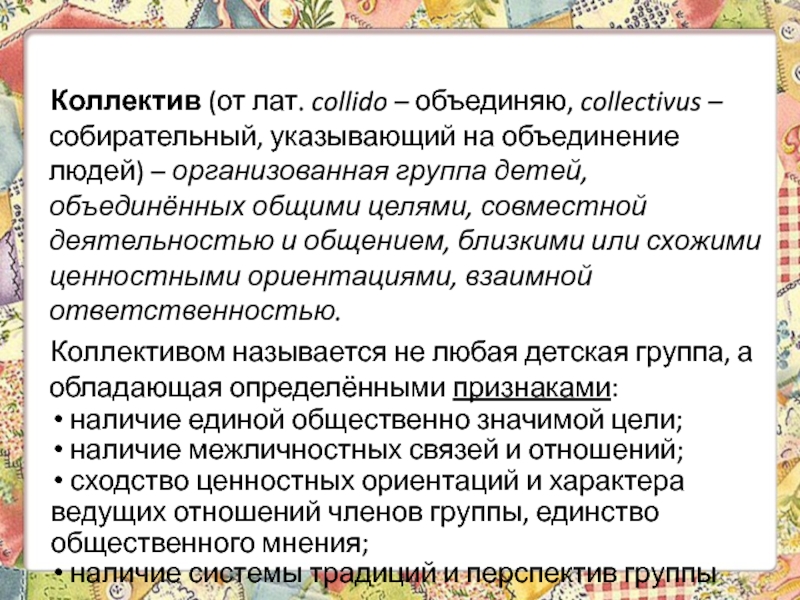 – школьного класса, отряда в оздоровительном лагере, объединения в организации