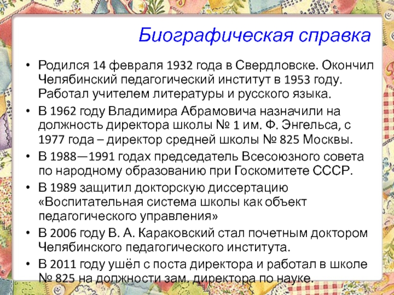 Караковский В. А. Воспитательная система обычной школы // Народное образование. — 2001. — № 1. — С. 77.