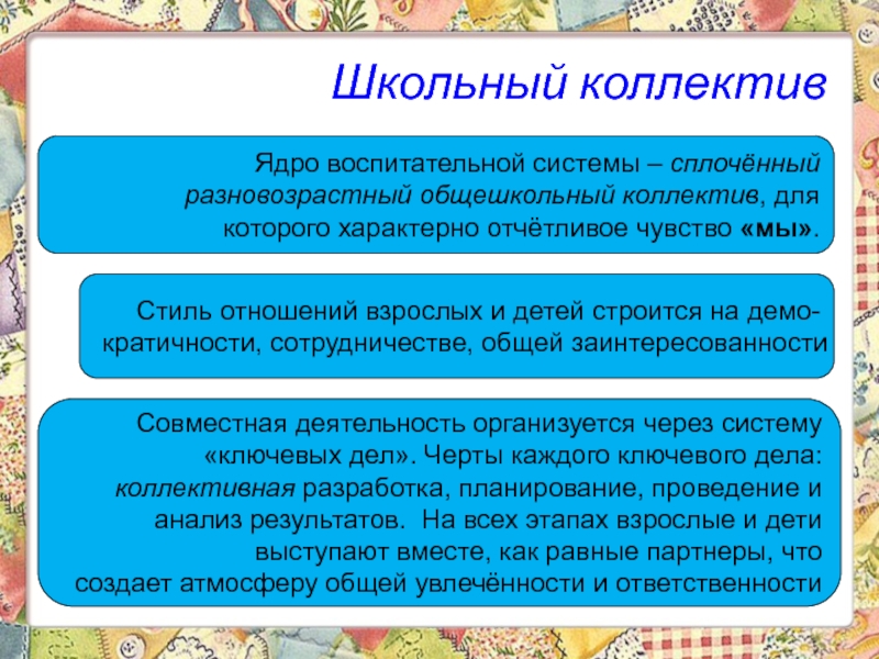 разработке, проведении и анализе ключевых дел школьного коллектива;