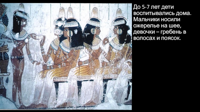 Слайд 3До 5-7 лет дети воспитывались дома. Мальчики носили ожерелье на