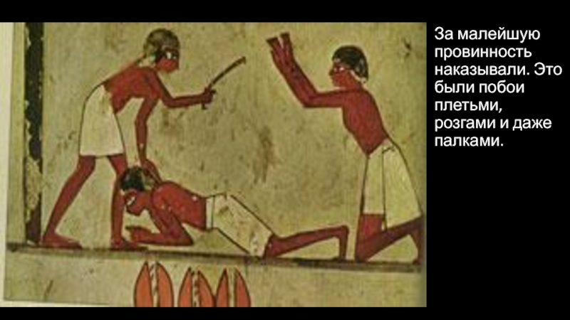 Слайд 16За малейшую провинность наказывали. Это были побои плетьми, розгами и