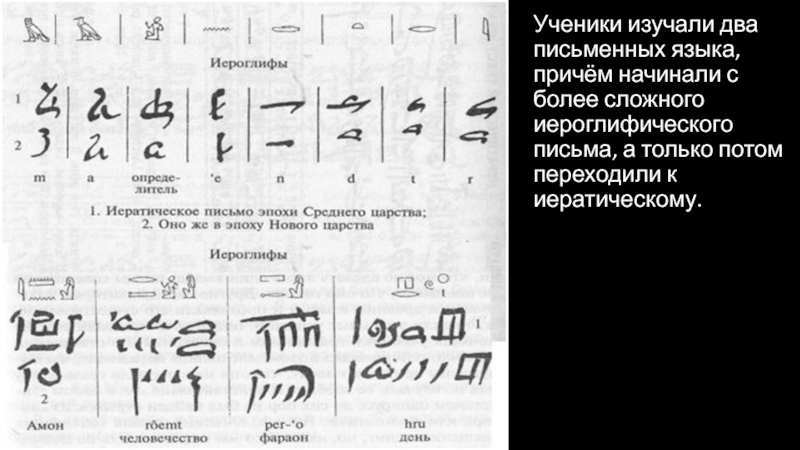 Слайд 13Ученики изучали два письменных языка, причём начинали с более сложного