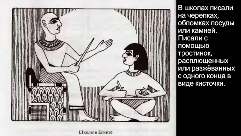 Слайд 14В школах писали на черепках, обломках посуды или камней. Писали