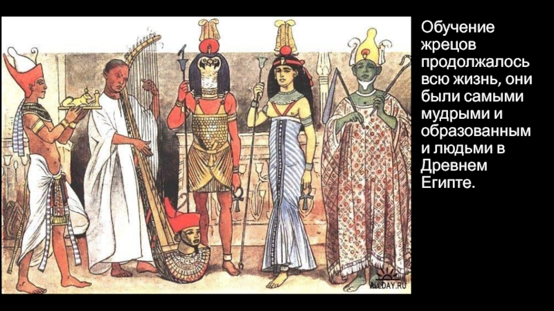 Слайд 18Обучение жрецов продолжалось всю жизнь, они были самыми мудрыми и