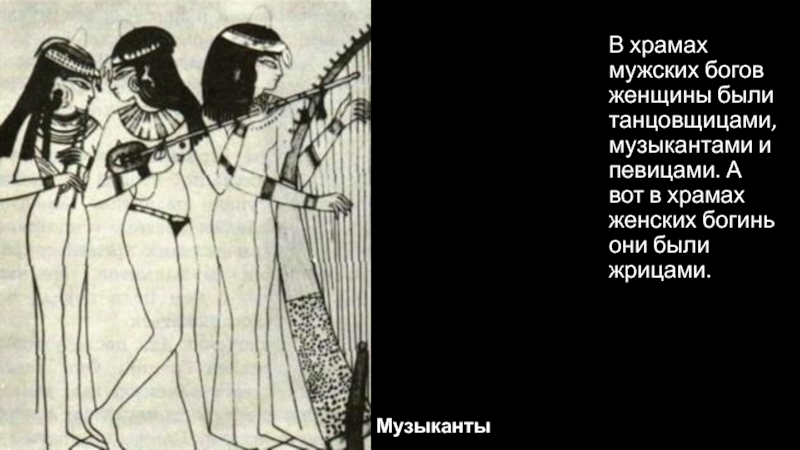 В храмах мужских богов женщины были танцовщицами, музыкантами и певицами.