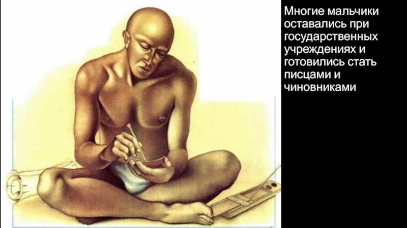 Слайд 19Многие мальчики оставались при государственных учреждениях и готовились стать писцами