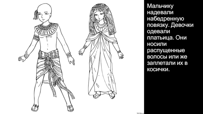 Слайд 10Мальчику надевали набедренную повязку. Девочки одевали платьица. Они носили распущенные