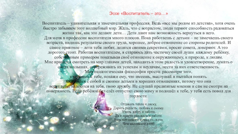 Слайд 5Эссе «Воспитатель – это…»