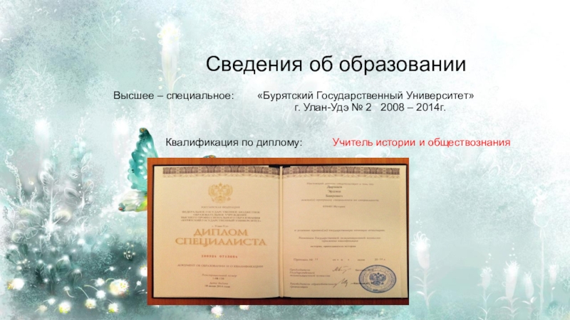 Квалификация по диплому: Учитель истории и обществознания