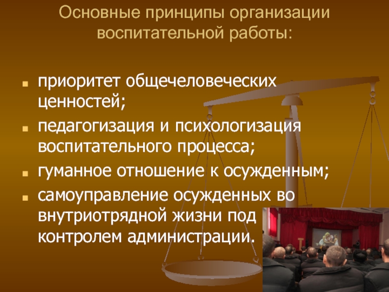 Слайд 6 Обеспечивая главную цель - исправление осужденных, воспитательная работа