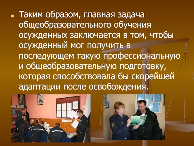 Слайд 18Таким образом, главная задача общеобразовательного обучения осужденных заключается в том,