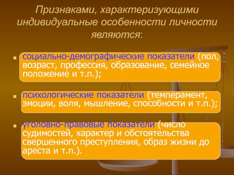 Признаками, характеризующими индивидуальные особенности личности являются: