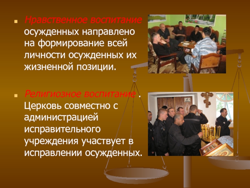 Слайд 11Нравственное воспитание осужденных направлено на формирование всей личности осужденных их