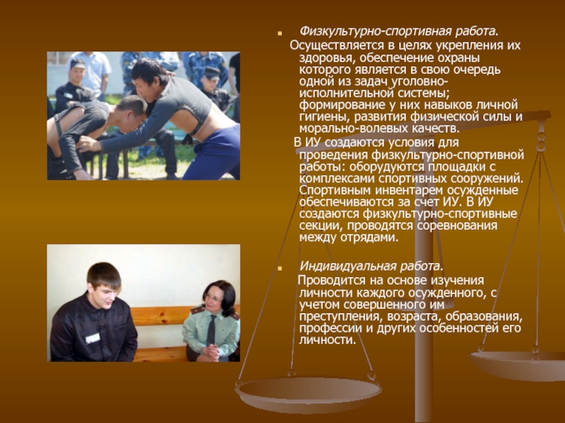 Слайд 8 Воспитательная работа с осужденными проводится с учетом индивидуальных особенностей