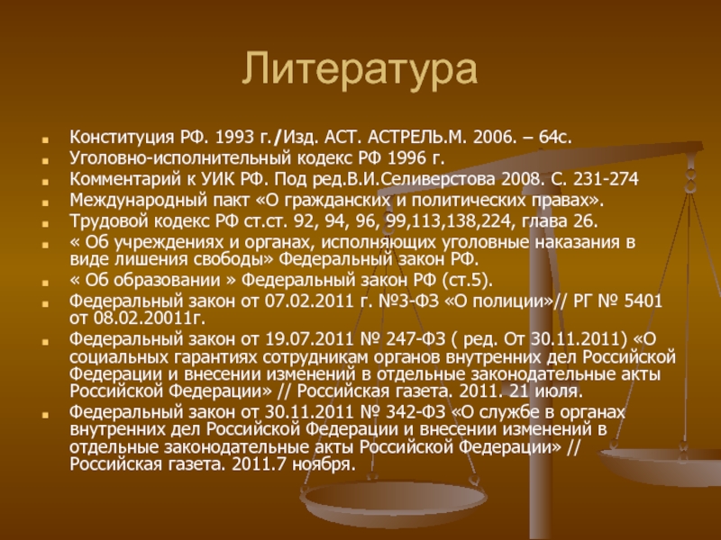« Об учреждениях и органах, исполняющих уголовные наказания в виде лишения свободы» Федеральный закон РФ.