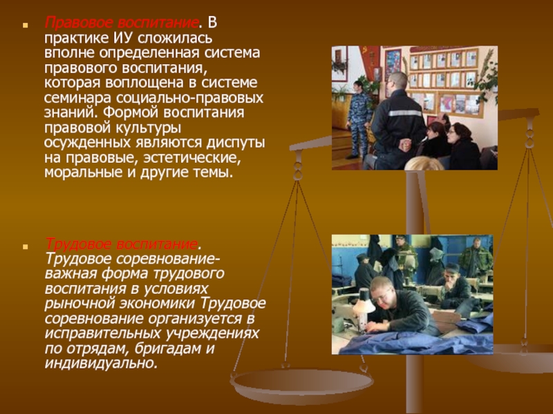Трудовое воспитание. Трудовое соревнование- важная форма трудового воспитания в условиях рыночной экономики Трудовое соревнование организуется в исправительных учреждениях по отрядам, бригадам и индивидуально.
