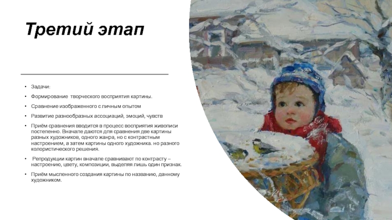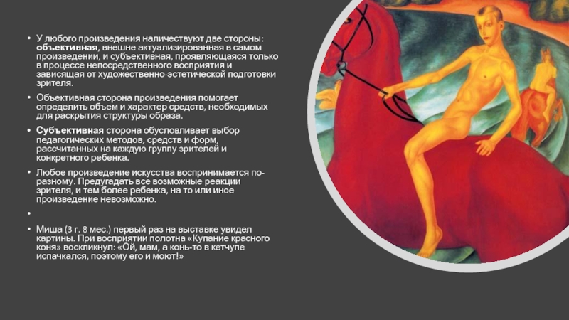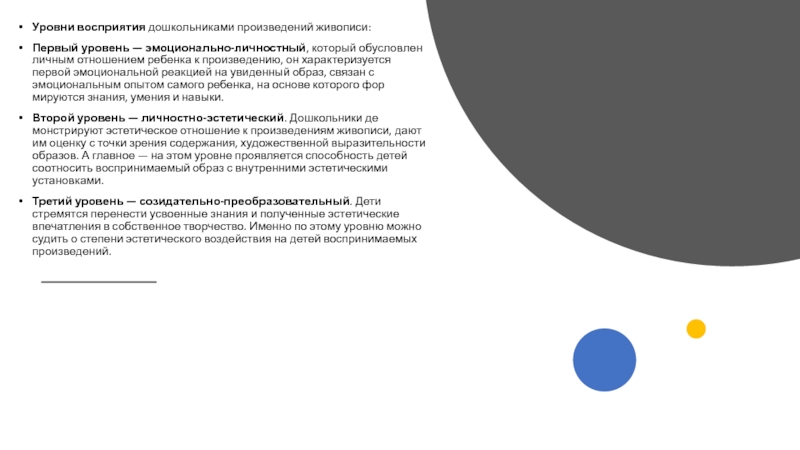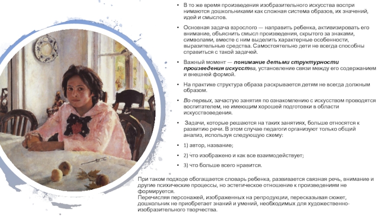 В то же время произведения изобразительного искусства воспринимаются дошкольниками как сложная система образов, их значений, идей и смыслов.