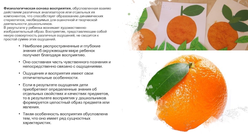 Если в результате ощущения дети приобретают определенные знания об отдельных свойствах и качествах предметов, то в результате восприятия у дошкольников формируется целостный образ предмета или явления.