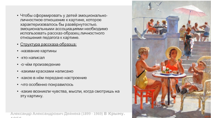 Педагог в искусствоведческом рассказе описывает содержание произведения и