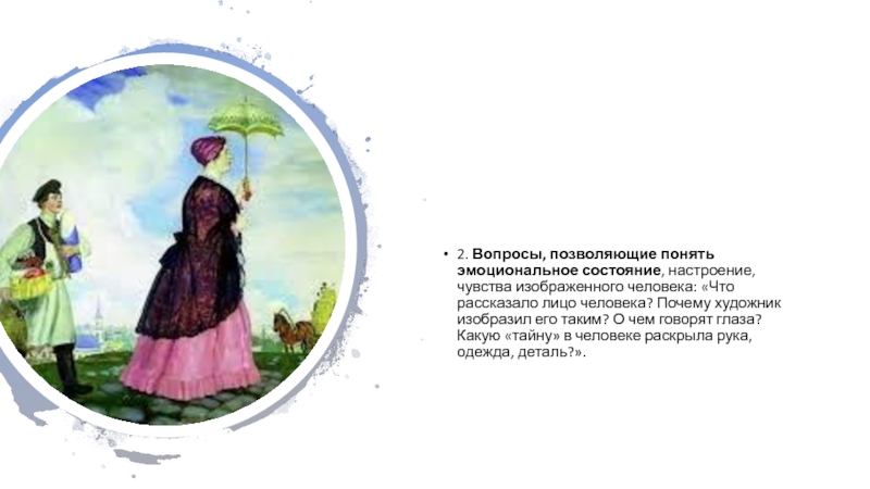 Слайд 482. Вопросы, позволяющие понять эмоциональное состояние, настроение, чувства изображенного человека: