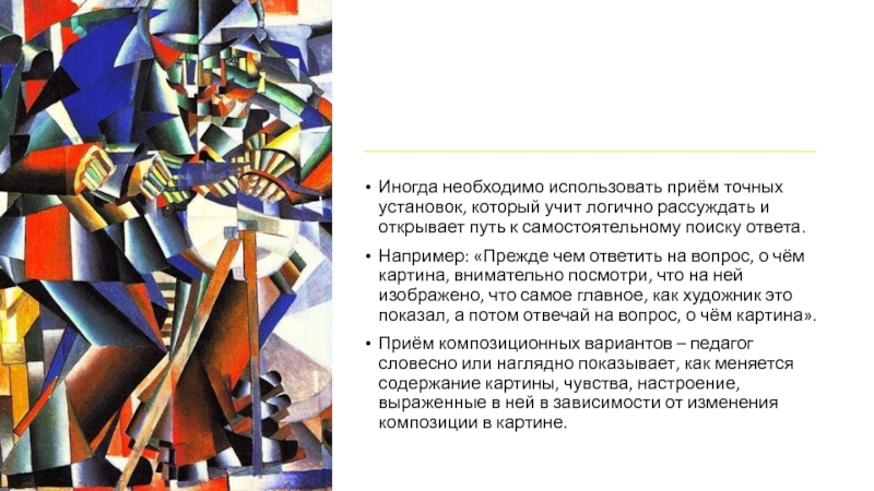 Важный момент — понимание детьми структурности произведения искусства, установление связи между его содержанием и внешней формой.