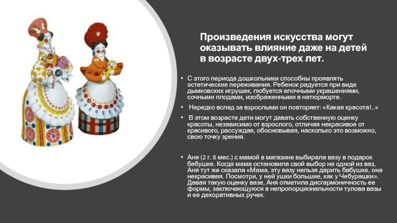 Слайд 6Произведения искусства могут оказывать влияние даже на детей в возрасте