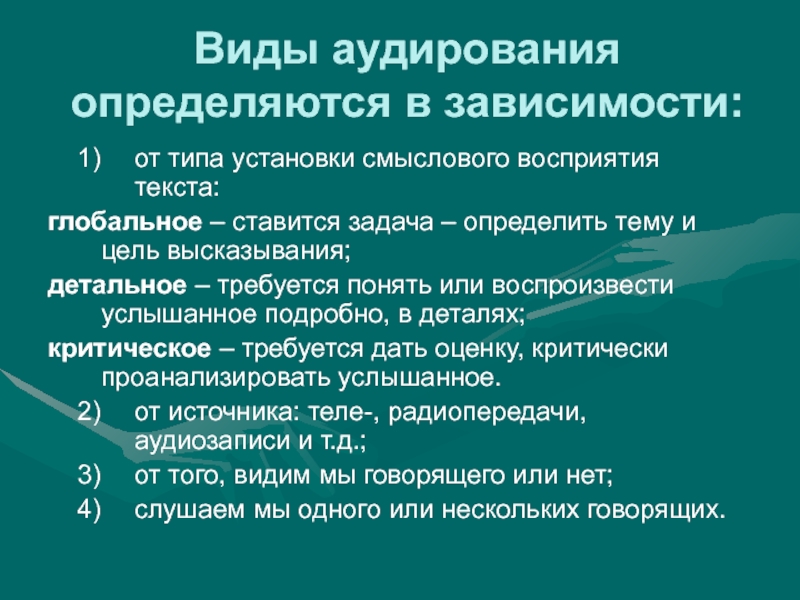 Слайд 3Аудирование (слушание) как вид речевой деятельности