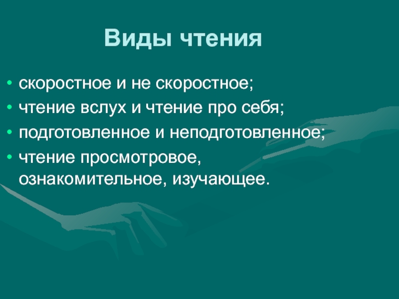 на смысловое восприятие графически зафиксированного текста. Целью чтения является получение