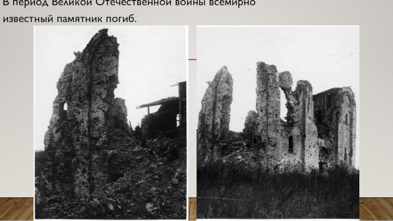 Слайд 9В период Великой Отечественной войны всемирно известный памятник погиб.