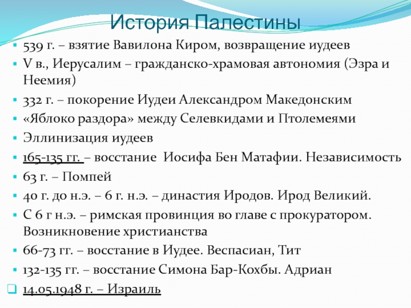 40 г. до н.э. – 6 г. н.э. – династия Иродов. Ирод Великий.