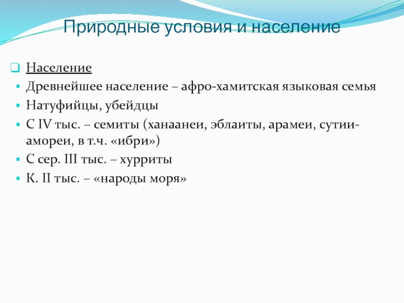 С IV тыс. – семиты (ханаанеи, эблаиты, арамеи, сутии-амореи, в