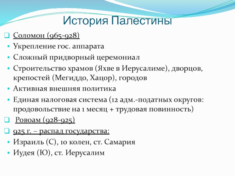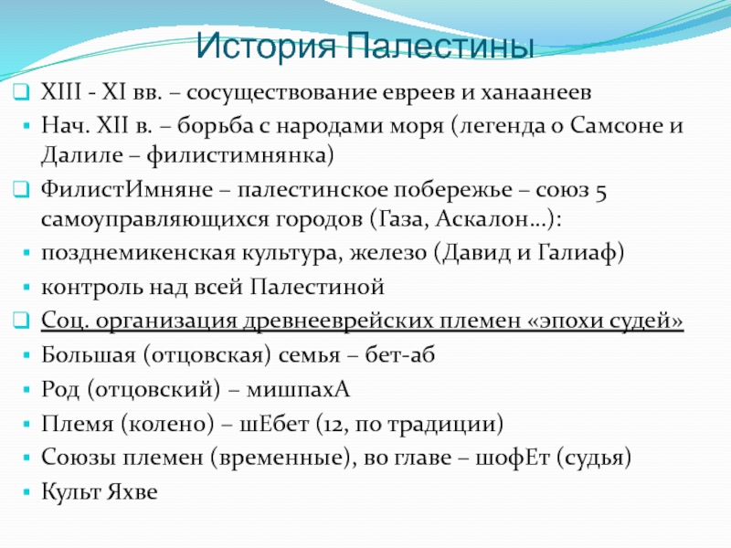 Социально-политическая история Палестины II-I тыс. до н.э. Государства Израиль и Иудея