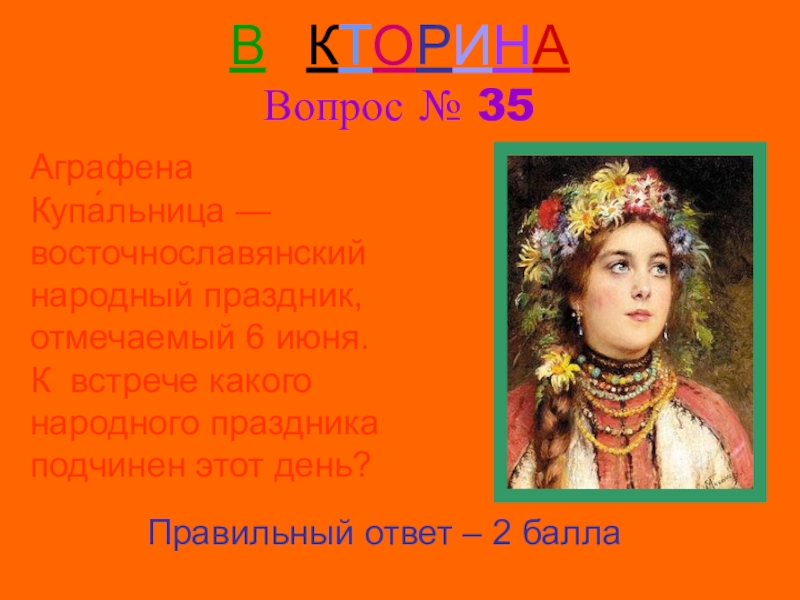Аграфена Купа́льница — восточнославянский народный праздник, отмечаемый 6 июня. К встрече
