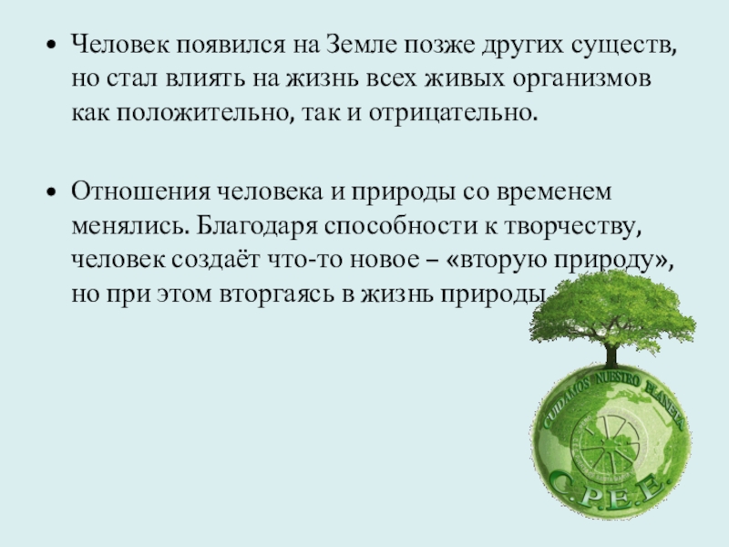 Слайд 3Человек появился на Земле позже других существ, но стал влиять