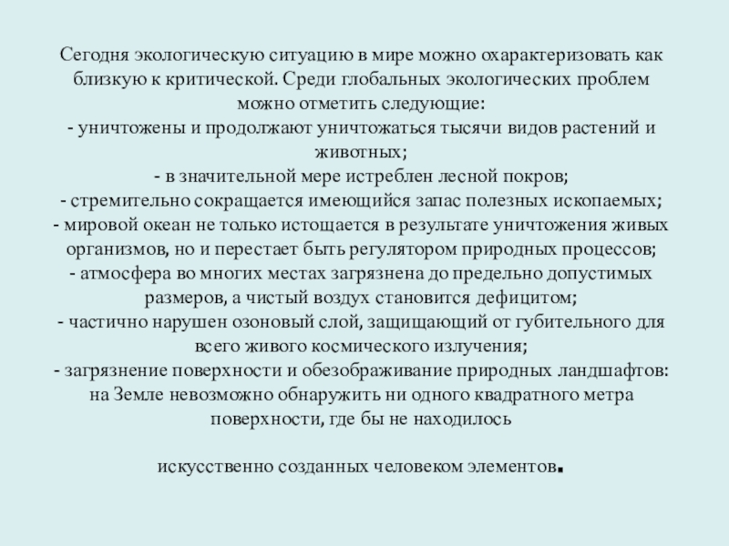 Слайд 7Сегодня экологическую ситуацию в мире можно охарактеризовать как близкую к