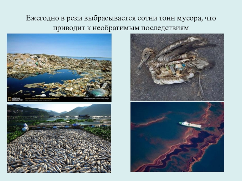 Слайд 8Ежегодно в реки выбрасывается сотни тонн мусора, что приводит к