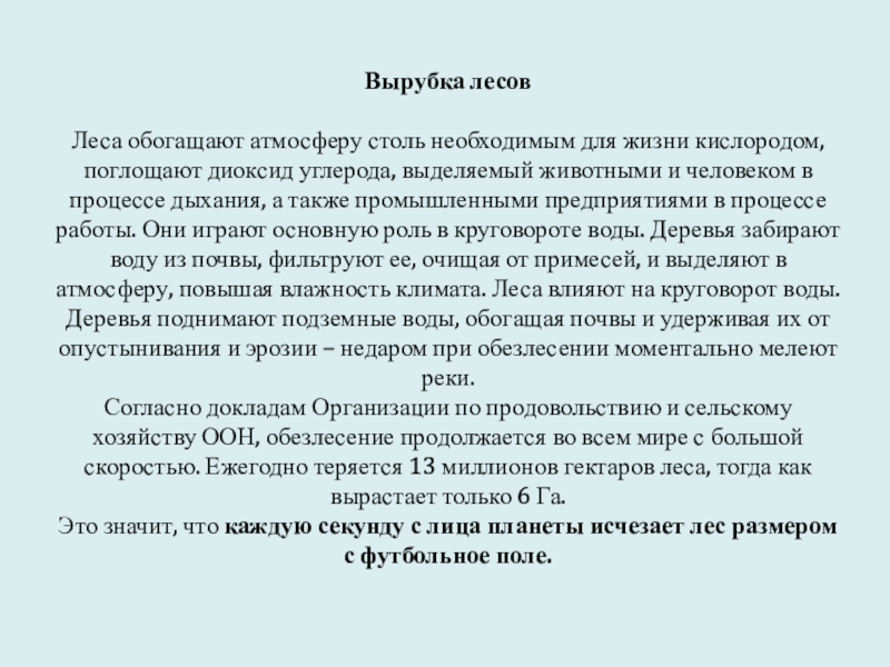 Это значит, что каждую секунду с лица планеты исчезает лес размером с футбольное поле.