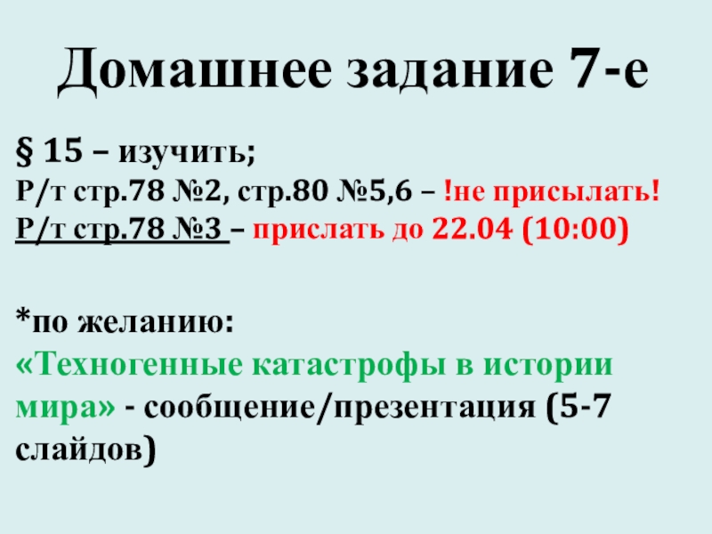 Р/т стр.78 №3 – прислать до 22.04 (10:00)