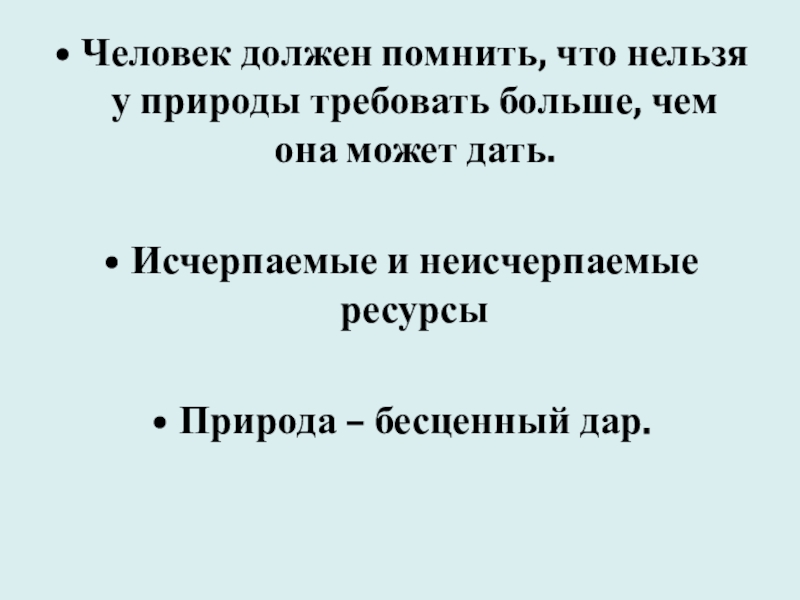 Слайд 21Человек должен помнить, что нельзя у природы требовать больше, чем