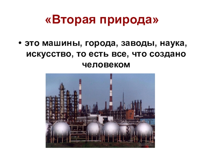 «Вторая природа»это машины, города, заводы, наука, искусство, то есть все, что создано человеком