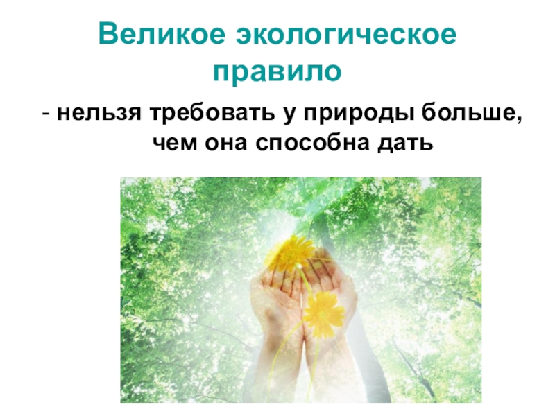 Великое экологическое правило- нельзя требовать у природы больше, чем она способна дать