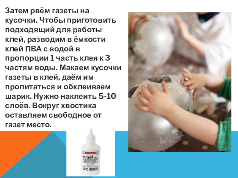 на кусочки газеты, а затем обклеивают ими воздушный шарик. Кроме