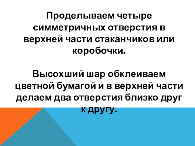 Слайд 9Проделываем четыре симметричных отверстия в верхней части стаканчиков или коробочки.