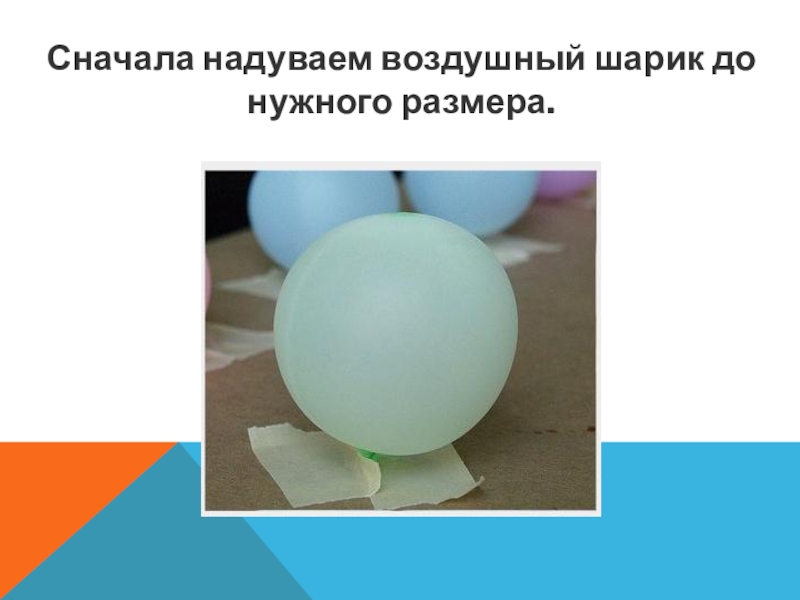 Слайд 4Сначала надуваем воздушный шарик до нужного размера.