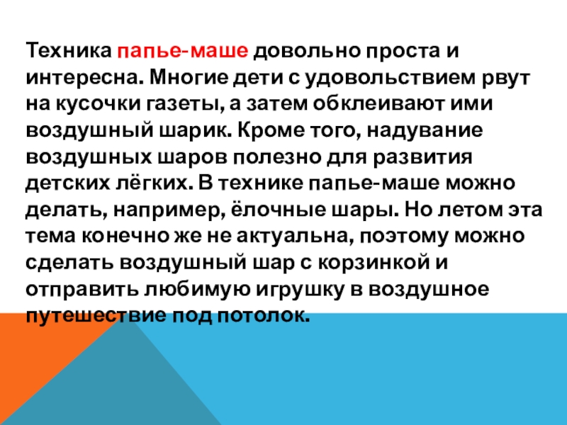 Слайд 2Техника папье-маше довольно проста и интересна. Многие дети с удовольствием рвут