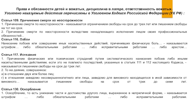 Слайд 6Права и обязанности детей и вожатых, дисциплина в лагере, ответственность