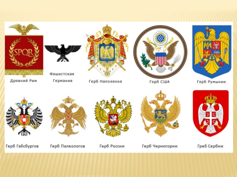 Слайд 3Первыми гербами были эмблемы, изображенные на монетах, медалях, печатях государств